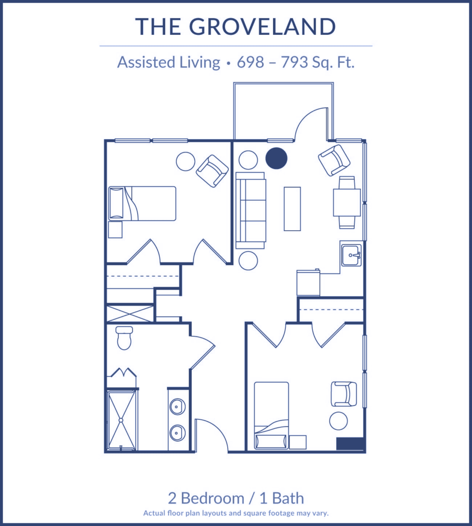2 Bedroom / 1 Bath / 698 – 793 sq. ft. (approximate)