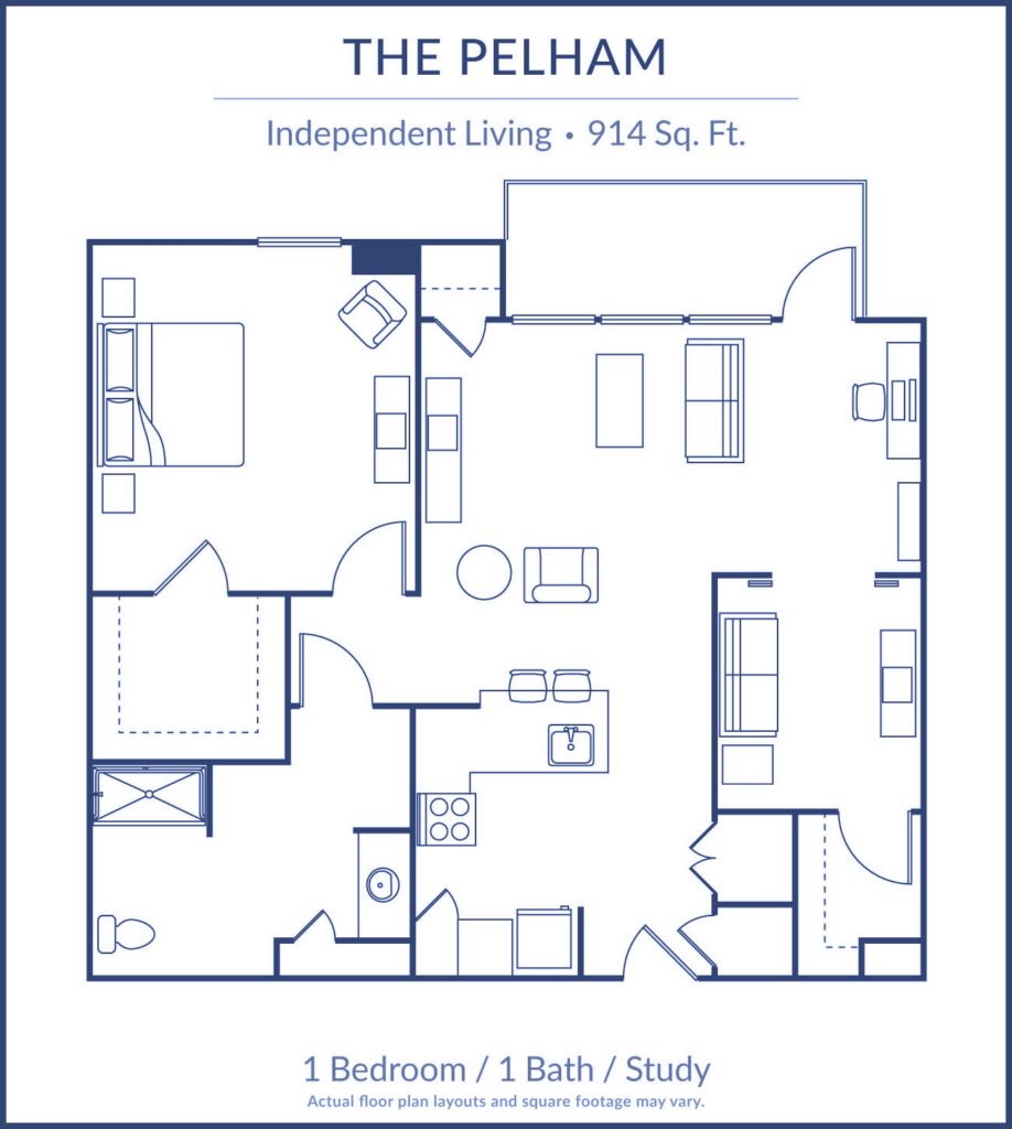 1 Bedroom / 1 Bath / Study / 914 Sq. Ft.