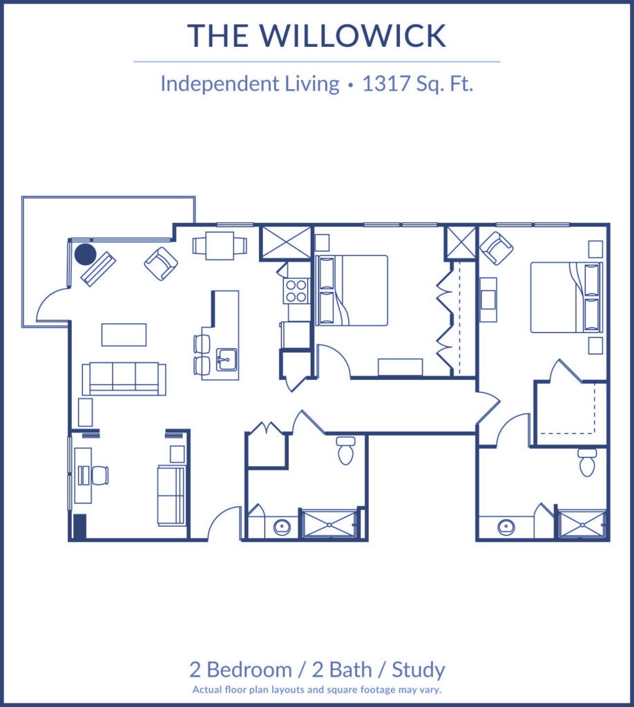 2 Bedroom / 2 Bath / Study / 1317 Sq. Ft.